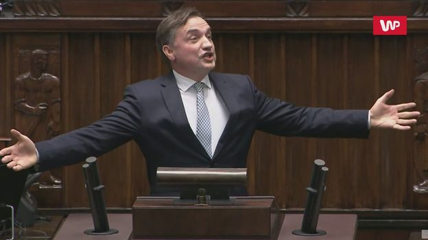 We wtorek w Sejmie przemówił Zbigniew Ziobro. W trakcie swojego wystąpienia minister sprawiedliwości nie tylko podnosił głos, a nawet krzyczał. Dodatkowo też gestykulował. Zachowanie szefa resortu sprawiedliwości w programie "Newsroom" Wirtualnej Polski ocenił ekspert ds. wizerunku dr Mirosław Oczkoś, który już na początku stwierdził, że ten wizerunek Ziobry "dużo mówi". - Mowa ciała najczęściej nie kłamie. Nad tym ciężko jest zapanować - trzeba być bardzo dobrze wyszkolonym agentem służb, np. FBI - powiedział gość WP. - Pierwsze wrażenie, jeśli się ogląda pana Ziobrę - pokazuje strach. Jest to jedno z czterech podstawowych stanów, które odczytuje się najszybciej: krótkie gesty, ściśnięte gardło. Jeżeli o mowę ciała jeszcze chodzi, to krótkie ekspresje mimiczne np. poruszanie brwiami i oczami, urywane gesty, szerokość gestu nieadekwatna do postury i ogólna nerwowość wewnętrzna - lęk, który się przebija i ciężko nad nim zapanować - kontynuował ekspert. Dodał, że "minister Ziobro po prostu się boi". - Być może boi się wystąpień, bo do tej pory występował w otoczeniu ludzi w Ministerstwie Sprawiedliwości i w sposób lekceważący wypowiadał jakieś sądy, nie było pytań i interakcji. To odzwyczaja - dodał Oczkoś i zaznaczył, że minister Ziobro nigdy nie należał do dobrych mówców. - Nie myślę, że bał się sali sejmowej, bo tam spędził dużo czasu. Być może obawia się konsekwencji swoich działań - mówił rozmówca WP. Następnie ekspert zaczął omawiać głos szefa resortu sprawiedliwości. Wyjaśnił, że ten miał tendencje do piszczenia, co oznacza nerwowość. - To, że się śmiejemy z własnych dowcipów, oznacza, że nie czujemy się pewnie - powiedział Oczkoś. Ekspert ocenił też mowę ciała Donalda Tuska, gdy słuchał Ziobry. - Z mimiki można rozczytać, że raczej było to między pobłażaniem a takim uśmiechem, bo nie sądzę, że życzliwością - stwierdził Oczkoś.
