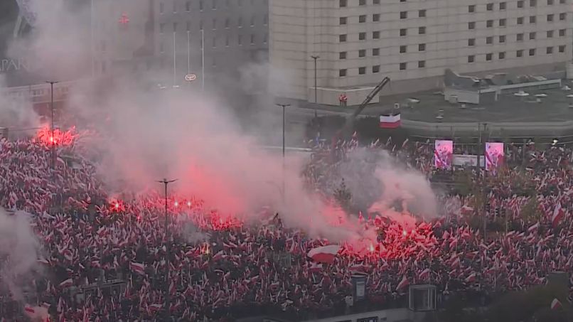 "Na rondzie Dmowskiego siwo od odpalonych rac. Zakaz pirotechniki był niemądry, wiadomo było od początku, że nie da się go egzekwować. Policja nawet nie próbuje. I wcale się nie dziwię" - relacjonował m.in. Michał Wojtczuk z "Gazety Wyborczej".