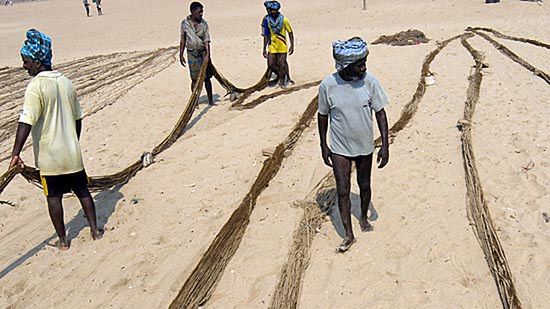 Rybacy z Indii przygotowują się do "ręcznego połowu ryb"...