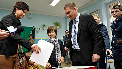 Członek Ruchu Palikota Robert Biedroń głosował w Szkole Podstawowej nr 34 w Gdyni.