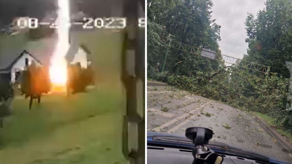 Na jednym z filmów udokumentowano moment uderzenia pioruna w pobliżu domu jednorodzinnego.