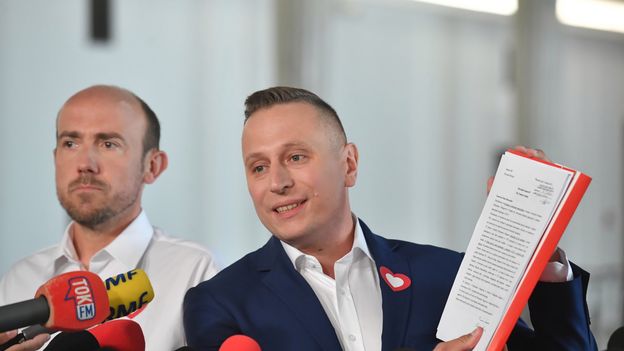 - Stoję w prawdzie i nie mam nic do ukrycia, a PiS 35 dni przed wyborami chce zrobić szopkę przykrywając swoje afery - mówił w programie "Tłit" senator Koalicji Obywatelskiej Krzysztof Brejza, który w czwartek zrzekł się immunitetu po wniosku gdańskiej prokuratury. - Jeden z dziennikarzy śledczych napisał książkę, która za dwa tygodnie się ukaże i która ukazuje historię operacji służb przeciwko mnie i mojej rodzinie. Będzie to najbardziej wstrząsająca historia nielegalnych działań służb w ciągu ostatnich 30 lat. PiS-owska prokuratura Barskiego i Ziobry zakładała, że immunitetu się nie zrzeknę. Robią to w czasie, kiedy nie będzie już posiedzeń Senatu, więc wyciągam do nich rękę. W aktach tej sprawy występują działacze PiS-u, przyjaciele Zbigniewa Ziobry i bardzo zależy mi na tym, by opinia publiczna poznała szczegóły tej perfidnej operacji. Za to wszystko odpowiada Zbigniew Ziobro: za wyłudzanie zgód na kontrolę nielegalnym narzędziem, za nielegalne publikowanie mojej korespondencji w telewizji publicznej. Wycinek sprawy, w której jestem pomówiony, że rzekomo 8 lat temu miałem wpływ na powołanie jakiejś jednostki. W tym wątku byłem pomówiony przez działaczkę PiS i zostałem w nim uznany za osobę oczernioną. Nie boję się. Rezygnuję z immunitetu, bo jestem osobą uczciwą, o uczciwość będę walczyć i będę ujawniać afery PiS-u. Wiem, że się naraziłem ludziom PiS. Sprawdźmy się, panie Ziobro i panie Barski. Pół roku temu szef Prokuratury Okręgowej w Gdańsku Michał Kierski podał się do dymisji z powodu mojej sprawy. To ziobrysta. Kilku prokuratorów po ujawnieniu afery Pegasusa odeszło ze służby - dodał polityk opozycji.
