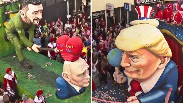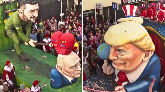 Wołodymyr Zełenski uderzający Władimira Putina "młotem miłości", czy Donald Trump w wymownym gestem wobec świata? Takie rzeczy możliwe tylko w Kolonii, gdzie kolejny raz odbyła się Parada Różanego Poniedziałku. Agencja AP udostępniła nagranie z poniedziałkowego wyadrzenia w niemieckim mieście, gdzie nie zabrakło tysięcy uczestników w barwnych strojach wśród specjalnie przygotowanych satyrycznych platform nawiązujących do bieżących wydarzeń politycznych i społecznych. Pojawił się m.in. prezydent Ukrainy z młotem, na którym widniał napis "Twórz miłość, nie wojny" nad głową przywódcy Rosji. Z kolei Trump został przedstawiony w sposób, jakby za nic miał cały świat i działał według własnych norm. Nie zabrakło też przyszłego kanclerza Nimiec Friedricha Merza. W związku z obawami o bezpieczeństwo uczestników, władze Kolonii wprowadziły zakaz wjazdu do śródmieścia dla ciężarówek o masie przekraczającej 7,5 tony w dniach kulminacyjnych karnawału, w tym w Różany Poniedziałek. Decyzja ta miała na celu zapobieżenie ewentualnym zamachom terrorystycznym, podobnym do tych, które miały miejsce w przeszłości.