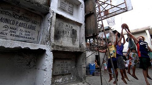 Cmentarz miejski w Navotas na Filipinach dla wielu stał się również domem. Biedni Filipińczycy z braku miejsca zaczęli budować swoje chatki na szczytach grobowców. Ludzie piorą, myją się, gotują - żyją próbując przetrwać. Jeśli komuś zaczyna się powodzić zakłada sobie prąd i instaluje światło.